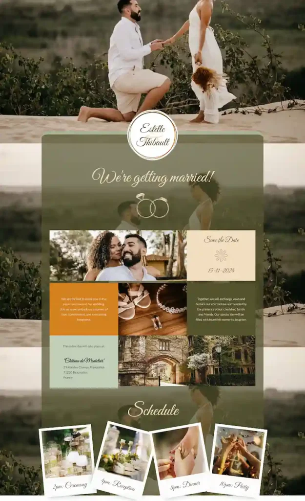 Just a beautiful, custom site at YourNames.aregettingmarried.org.